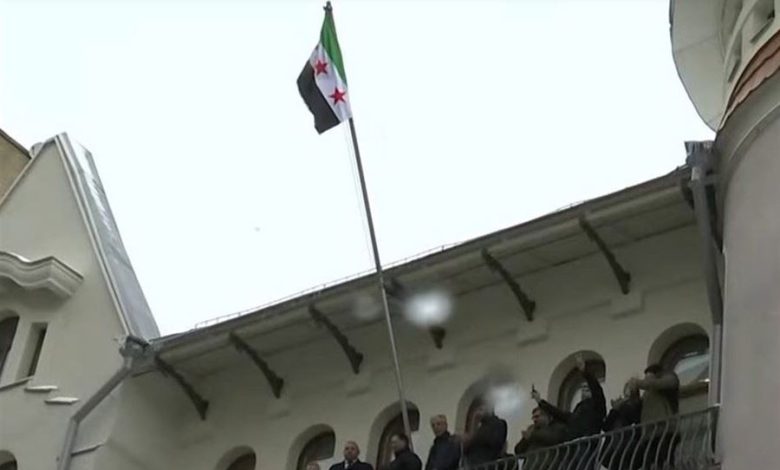 بالفيديو: رفع علم المعارضة على السفارة السورية في موسكو