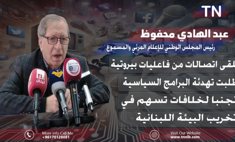 المجلس الوطني للاعلام تلقى اتصالات من فاعليات بيروتية طلبت تهدئة البرامج السياسية تجنبا لخلافات تسهم في تخريب البيئة اللبنانية