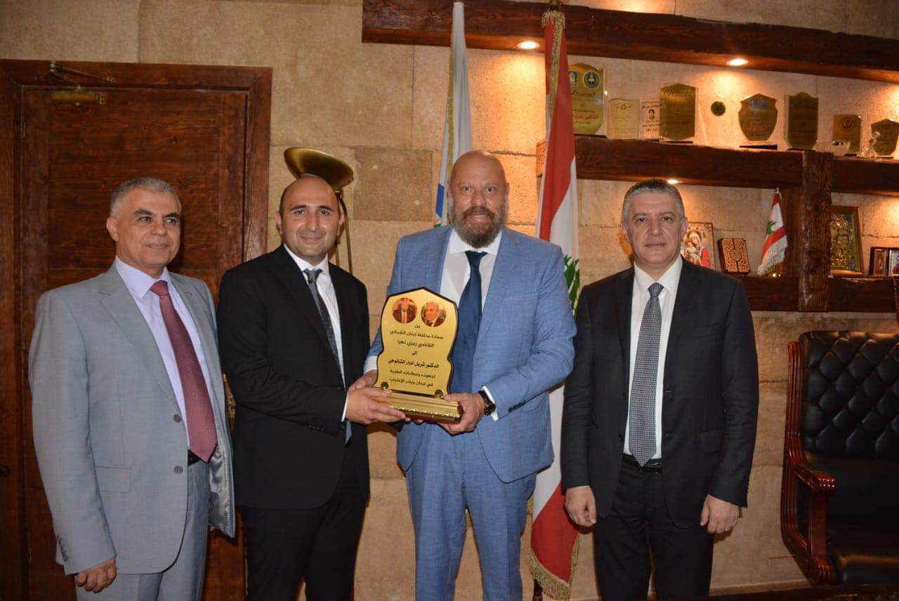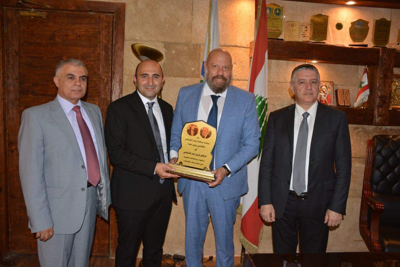 كرم محافظ لبنان الشمالي القاضي رمزي نهرا الدكتور شربل شالوحي على عطاءاته وجهوده الطبية ومساعدة اللبنانيين صحيا في لبنان وبلاد الاغتراب، بحضور النائب جورج عطا الله ، مدير عام وزارة الصحة فادي سنان ، رئيس دائرة الرقابة على المستشفيات الحكومية محمد الجراح، عضو مجلس ادارة مستشفى عبد الله الرئيسي الحكومية احمد طالب، رئيس بلدية دار بعشتار المهندس اسحاق عبود، الدكتور ايلي ايليا، مستشار المحافظ للمنظمات الدولية المهندس ماهر تميم، رئيس جمعية وحدة عكار والشمال لقمان الكردي.