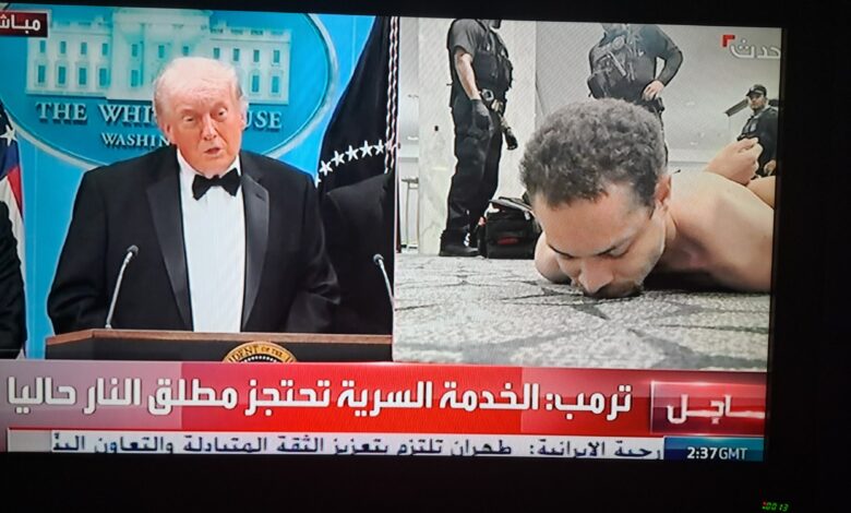 ترامب : أكد إلقاء القبض على مطلق النار، من قبل الخدمة السرية، والمعتقل شخص مريض،وسيقبع في السجن ، سوف يلقى عقوبته. إصيب ضابط من الخدمة السرية، من مسافة قريبة، ولكنه بخير،وأضاف “ترامب” :أن الخدمه السرية قامت بعمل رائع ، وحادثة اليوم ، تجربة صادمة،وقد سمعت ضجيج انا وزوجتي ، وانسحبنا ،ولم تكن لدينا الفرصة لتكملة هذا الاحتفال، وسنعمل على جدولة واقامته لاحقاً.